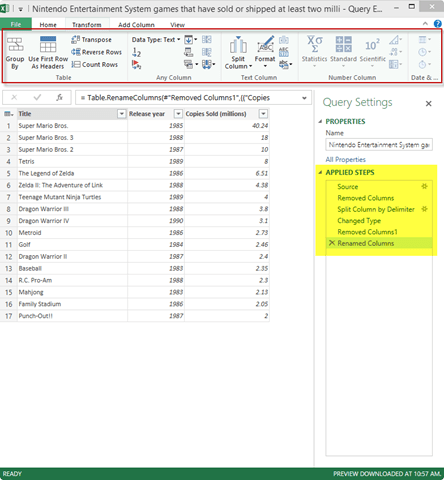 Not only can you import the data from your selected data source, you also have the ability to clean, transform, filter, and merge the data. With Power Query, we can easily apply a series of transformations in order to perfectly shape our data for our specific reporting requirements. Do you need to pivot your data? Transpose it? Split a column by a delimiter? Rename fields? Create calculations? Upper case the first letter of each word? Change a data type? Apply formatting? Merge census data with your corporate data? Power Query can do all of that and more without writing a single line of code. That’s pretty impressive if you ask me.
