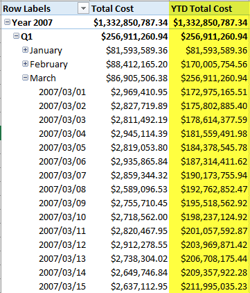 YTD Total Cost:=CALCULATE([Total Cost],DATESYTD('Date'[Datekey]))