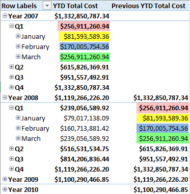 And here are the results. We can see that we are now able to calculate the Previous YTD Total Cost quite easily.