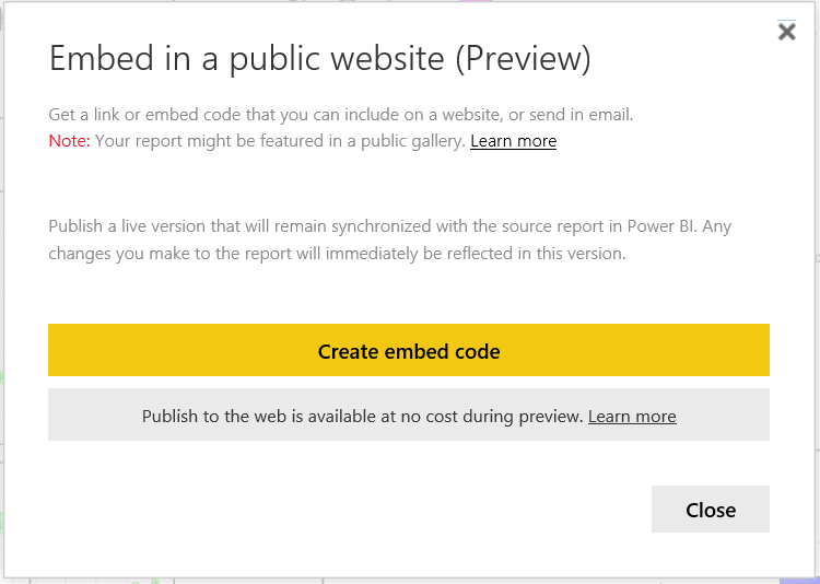 Read the Power BI “publish to web” announcement here. There’s also some really great examples of some Power BI reports that were published to the web by Microsoft customers and partners.