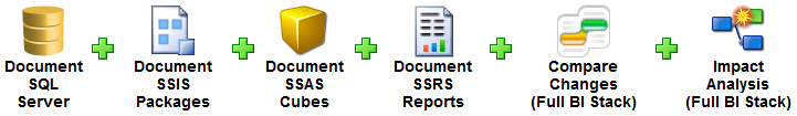 BI Documenter allows you to quickly and easily document your entire BI environment. So unlike the other popular tools out there, BI Documenter will document SQL Server databases (2000, 2005, 2008 & R2), SSIS packages, SSAS cubes, and SSRS reports. Because all of these objects can be documented in a single snap shot, you are then able to easily perform impact analysis across all objects, which has a pretty slick UI and is very intuitive. You can also do snapshot comparison across your whole stack, so you can see how any object in a snapshot differs from a previous snapshot.