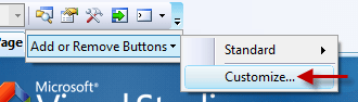 4. Now we need to add the Macro to the toolbar in BIDS. At the end of the Standard toolbar, click the little drop down arrow, select Add or Remove Button. Then select Customize.