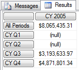What’s this?! Empty cells! You may be asking yourself, “Self, what gives?”. I’ll give you a hint. Take a look at the query results if we execute the same query across all years rather than just for 2005. Here’s the query: